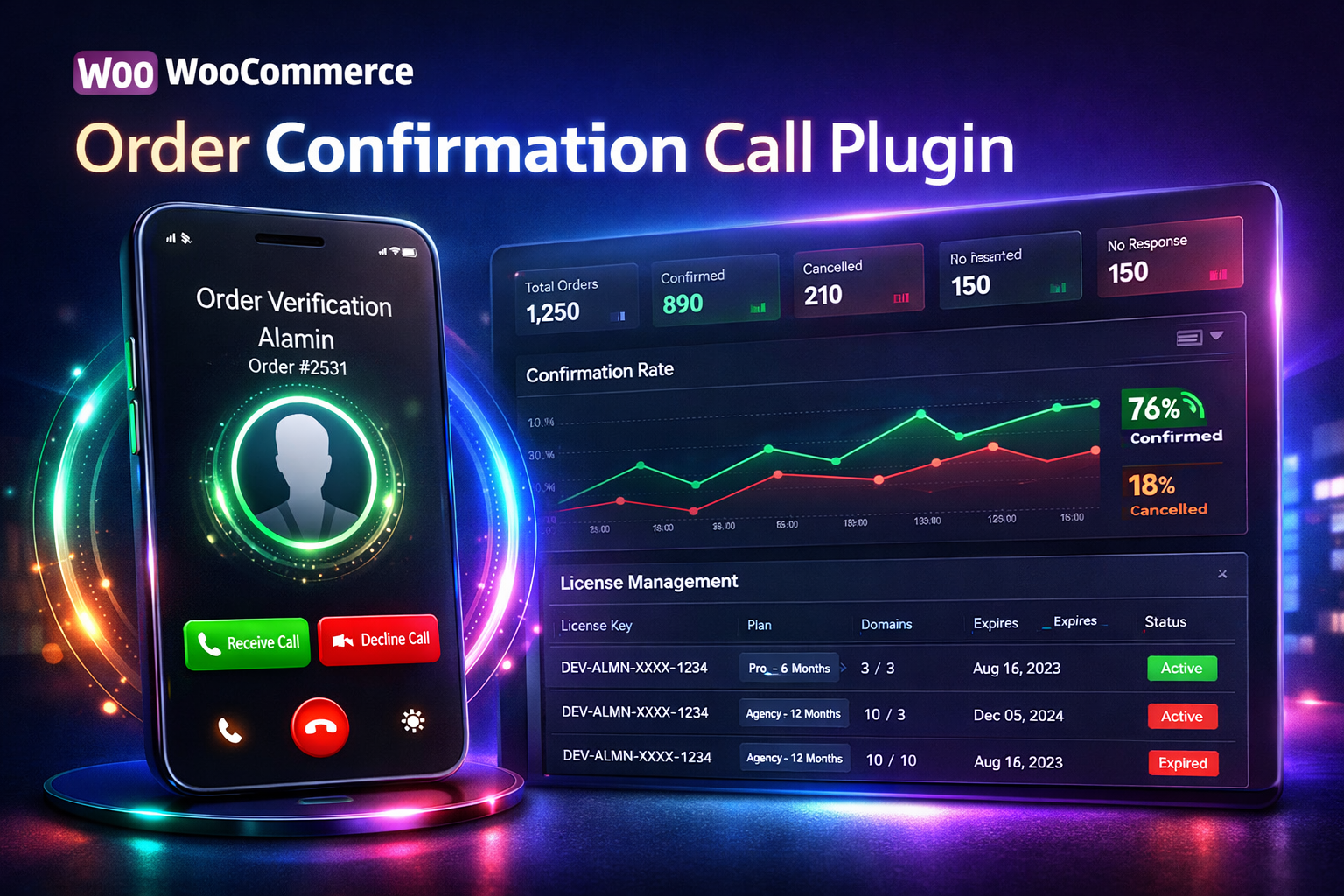 Order Confirmation Call হলো WooCommerce এর জন্য একটি অভিনব প্লাগইন যা আপনার অনলাইন স্টোরের অর্ডার ভেরিফিকেশন প্রসেসকে সম্পূর্ণ নতুন মাত্রায় নিয়ে যায়। এই প্লাগইনটি একটি বাস্তবসম্মত ইনকামিং ফোন কল ইন্টারফেস তৈরি করে যা গ্রাহকদের অর্ডার নিশ্চিত বা বাতিল করার সুযোগ দেয়। কাস্টম রিংটোন, ভয়েস মেসেজ, এবং আকর্ষণীয় UI ডিজাইনের মাধ্যমে এটি আপনার স্টোরের প্রফেশনালিজম বাড়ায় এবং ফেক অর্ডার কমাতে সাহায্য করে।